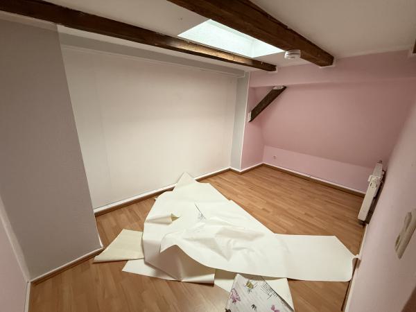 4,5-Raumwohnung, Nutzfläche ca. 125m², off. Küche, innenliegend. Bad m. Wanne u. WM-Anschl., Gäste-WC oben, Laminat u. Fliesen, Balken, begehb. Ankleide, kein Energiepass erforderlich nach EnEV § 16 Abs. 5 (Baudenkmal)