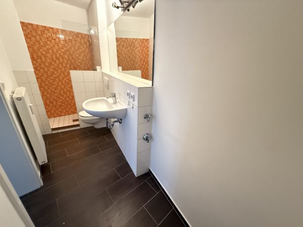 2 Zimmer, offene Küche, alle Räume gefliest außer Schlafzimmer, Fenster m. Sichtschutz, Bad m. ebenerdiger Dusche, Waschtisch, WC + WM-Anschluss, kein Energiepass erforderlich nach EnEV § 16 Abs. 5 (Baudenkmal)