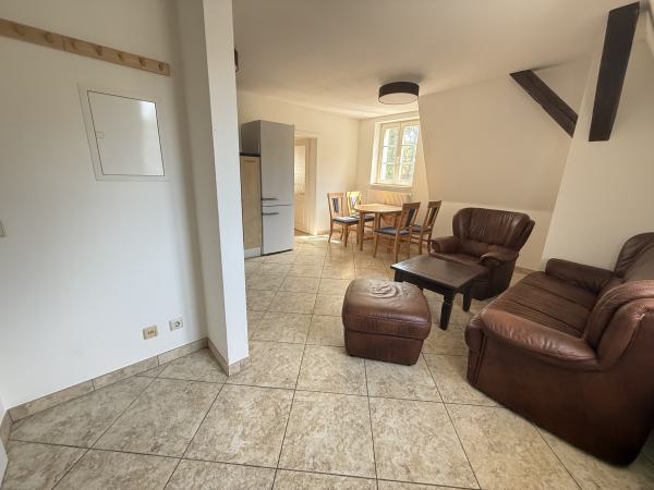 Fliesen u. Vinyl, zwei Räume m. Balken, gr. Küche, innenliegend. Bad m. Wanne u. WM-Anschl., Wohnen als Galerie m. kl. Austritt hofs. u. Ausgang...