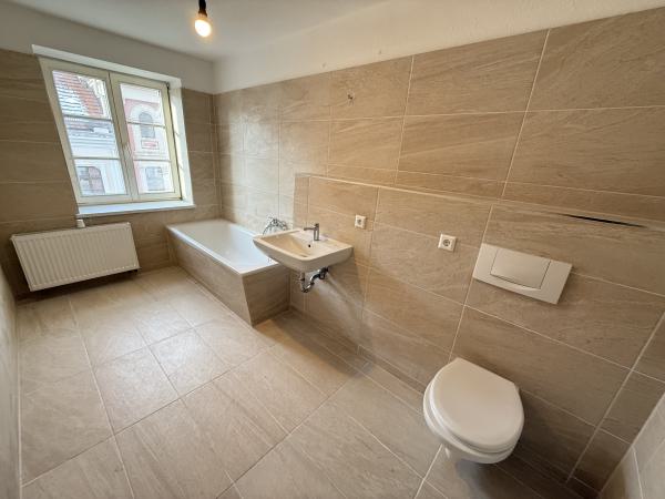 frisch hergerichtet! Fliesen u. Laminat, gr. Tageslichtbad m. Wanne u. WM-Anschl., sep. gr. Küche, gr. Zimmer mit Dachliegefenstern u. Balkenelementen, Stellpl. 30€/Monat in Objekt Wilhelmsplatz 15 mögl., kein Energiepass erforderlich nach EnEV § 16 Abs. 5 (Baudenkmal)