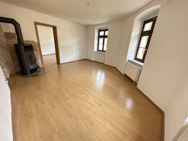 Bad mit Wanne, Dusche, Fenster u. Fußbodenheizung, Kamin im Wohnzimmer, Laminat u. Fliesen, kein Energiepass erforderlich nach EnEV § 16 Abs. 5 (Baudenkmal)