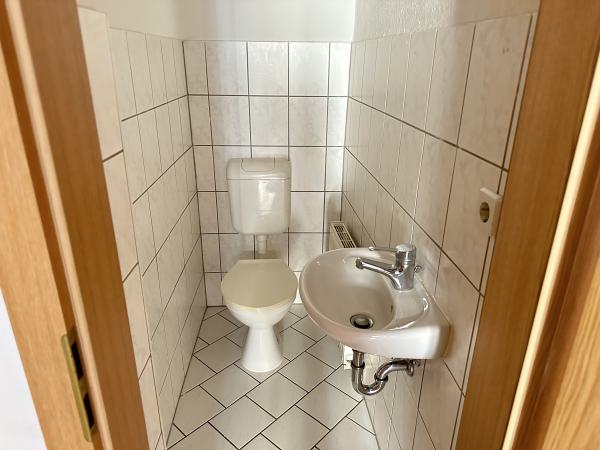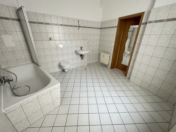 Fliesen u. PVC, 2 gr. Zimmer hofs., Küche a. Wohnzimmer, innenliegend. Bad m. Wanne u. WM-Anschl., Stellpl. f. 50€/Monat in Berliner Str. 56...