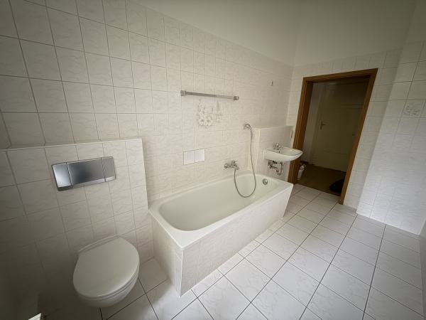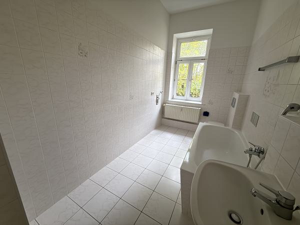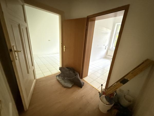 Frisch renoviert! Fliesen u. Laminat, Tageslichtbad m. Wanne u. WM-Anschl., gr. Küche, Schlaf- u. Wohnzi. als Durchgang oder sep.,
