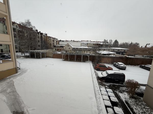 Fliesen u. Vinyl, innenliegend. Bad m. Dusche u. WM-Anschl., sehr gr., sep. Küche, gr. Schlaf-/Wohnzimmer m. Blick auf Wilhelmspl., Stellpl. f. 30€/Monat...