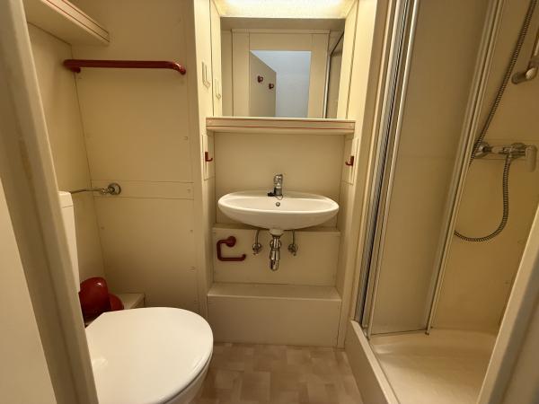 ERSTBEZUG! Tageslichtbad m. Wanne, Dusche u. WM-Anschl., gr. Schlafzi., geräum. Wohnzi. m. off. Küche u. schmal. Balkon straßens., STPL...